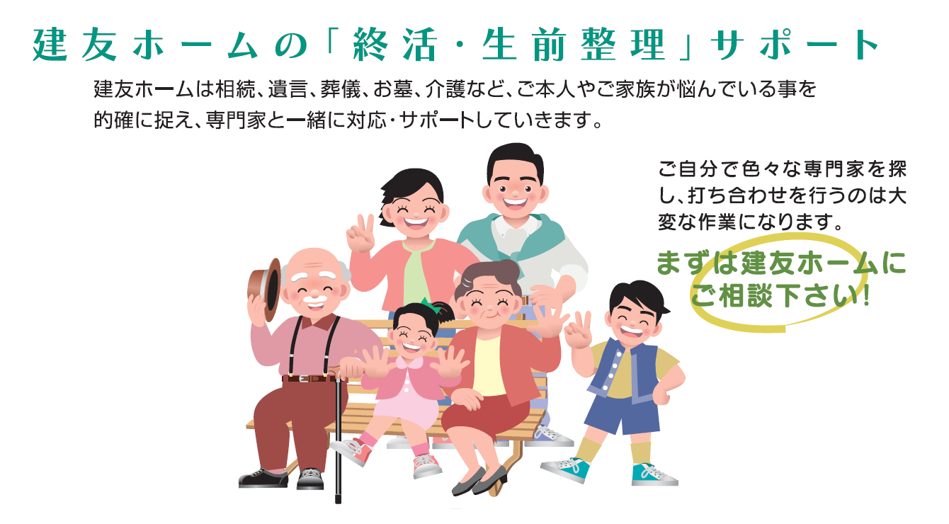 建友ホームは、終活を考えていらっしゃるお客様に「住まいの終活・生前整理」を